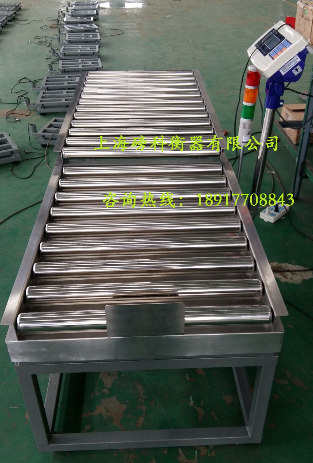 常規(guī)滾筒秤的基礎,可加控制箱,控制三路開關,實現(xiàn)工業(yè)自動化生產以及配備三色報警燈。
